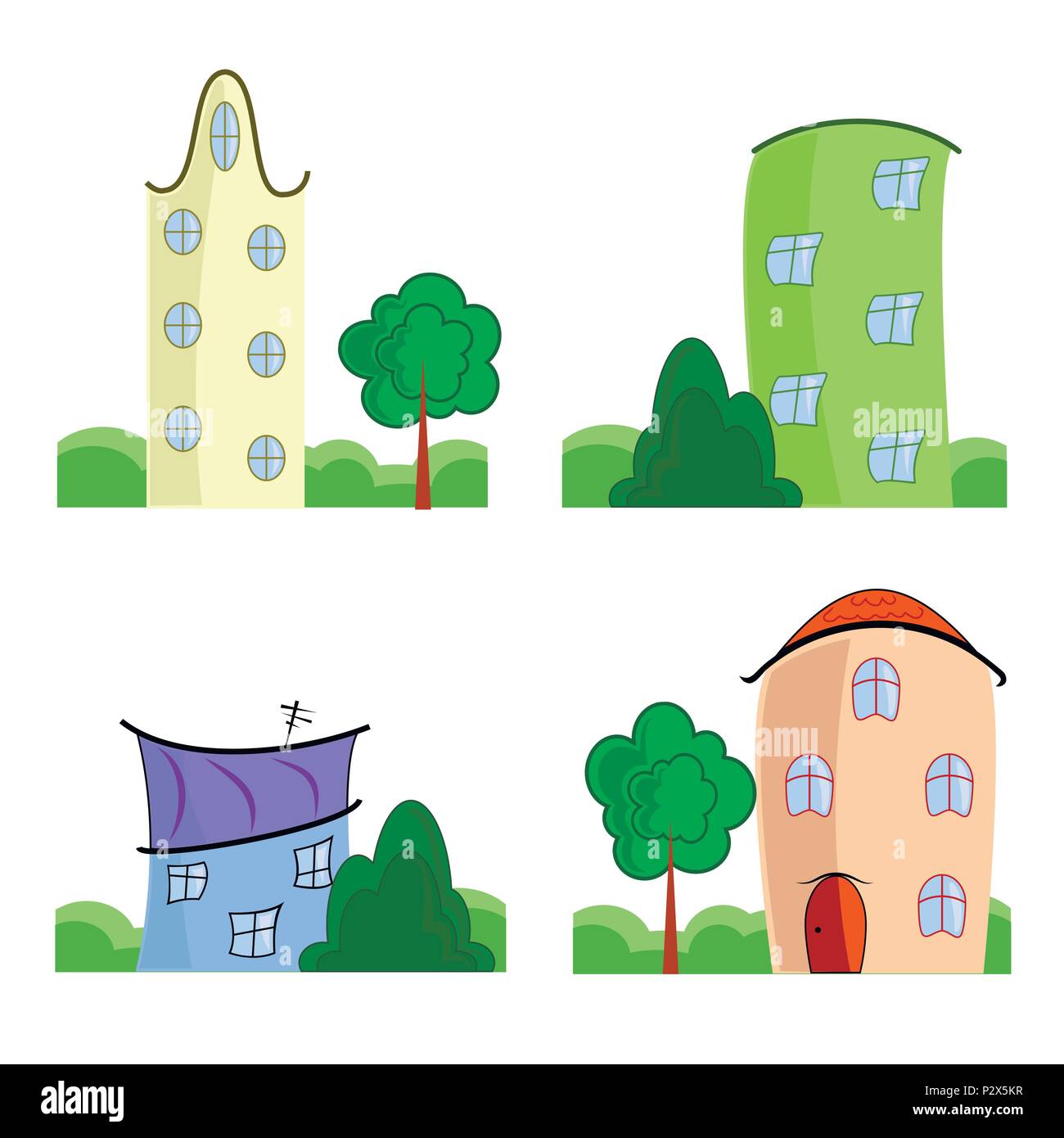 Set Di Carino Luminoso Case Cartoni Animati Archivio Illustrazioni K10376137 Fotosearch