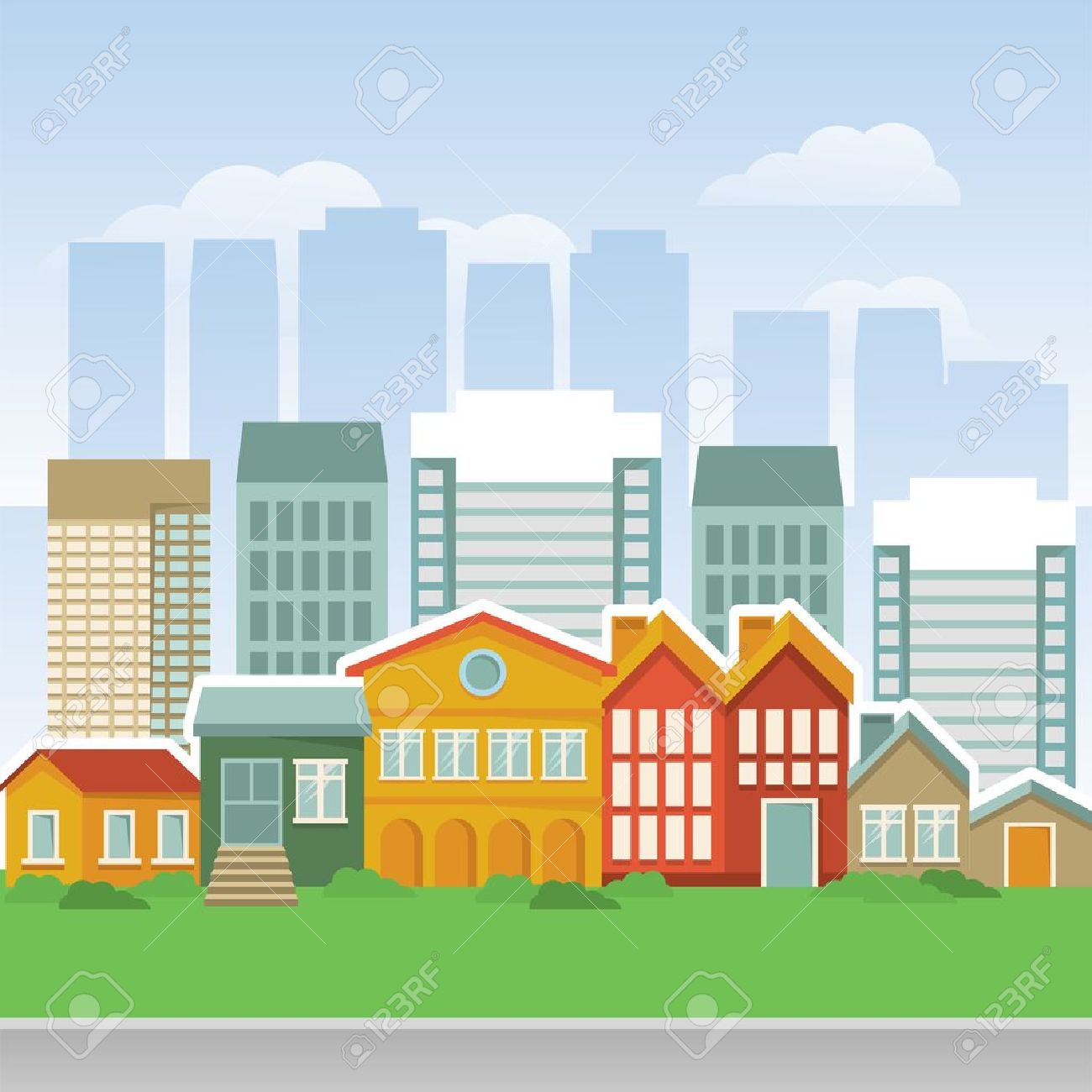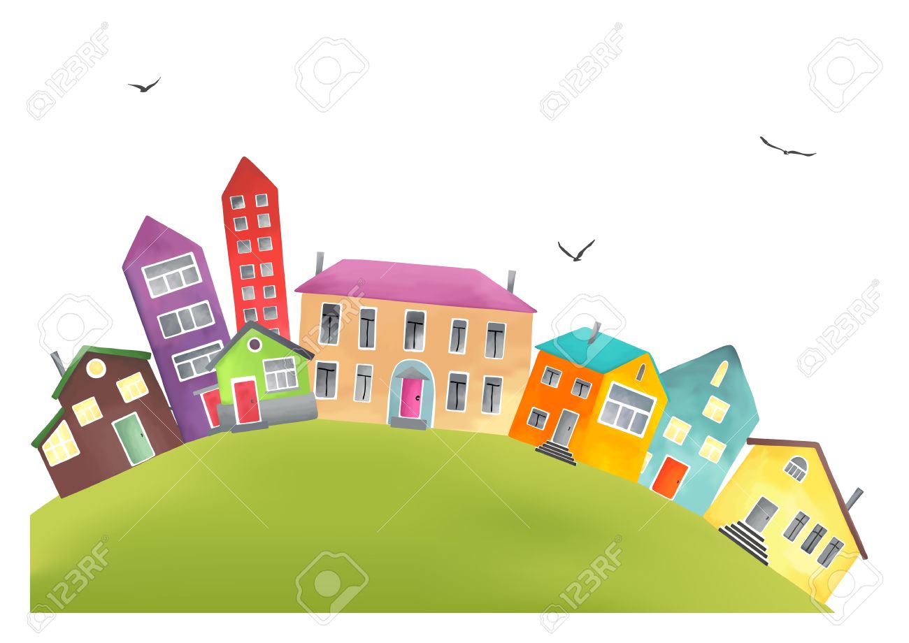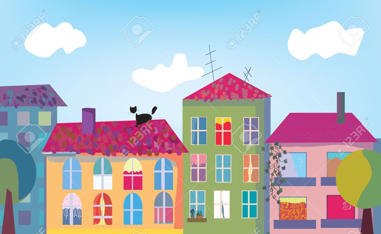 Vettoriale Citta Con Le Case Dei Cartoni Animati E Buidings Landsape Image 15968731