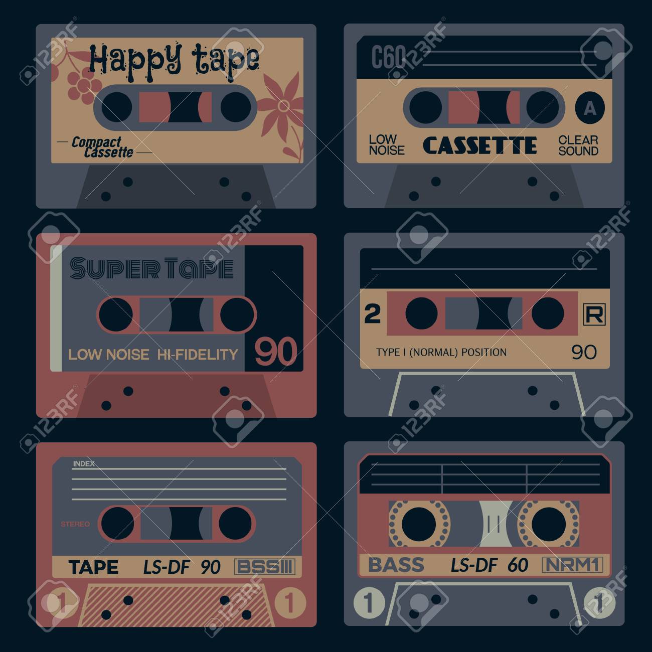 Vettoriale Set Di Cassette Audio Vecchi Tempi Tecnologia Di Registrazione Musicale Retro Illustrazione Vettoriale Colorata Image 98111586