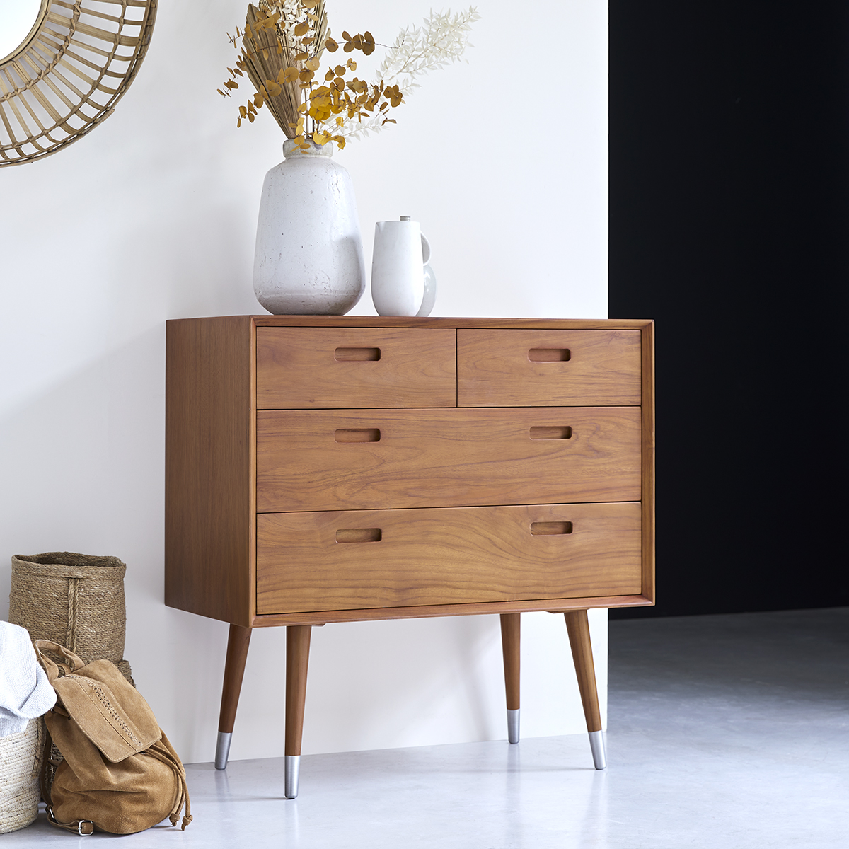 Cassettiera In Teak 4 Cassetti Mobili Camera Da Letto Tikamoon
