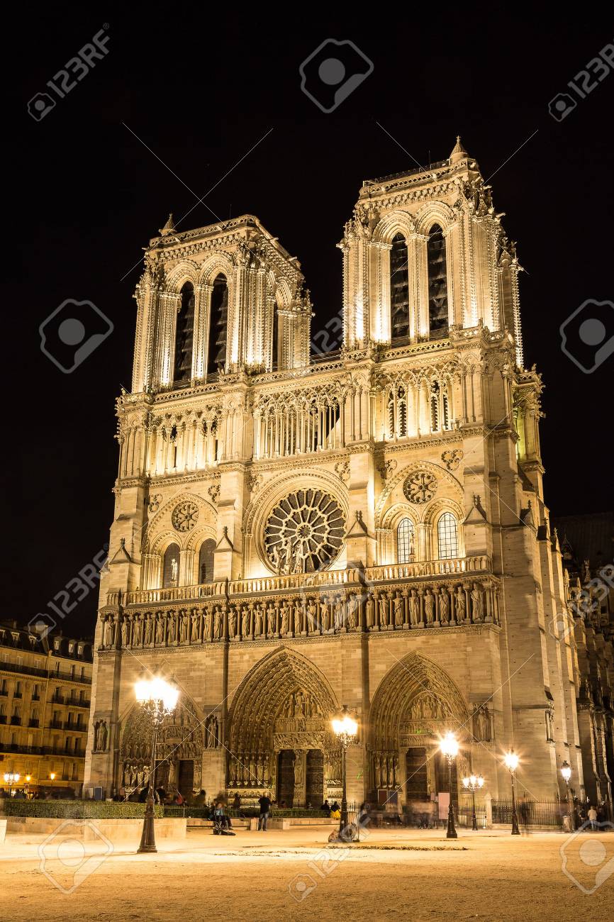 Notre Dame De Paris Cathedral At Night Is One Of The Most Visited Stock Photo Picture And Royalty Free Image Image 45438569