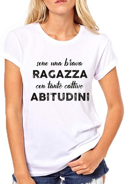 Puzzletee Tshirt Divertente Donna Sono Una Brava Ragazza Con Tante Cattive Abitudini Magliette Donna Divertenti Amazon It Abbigliamento