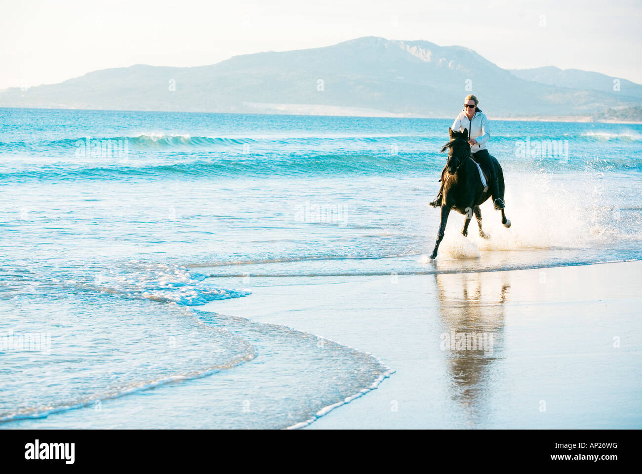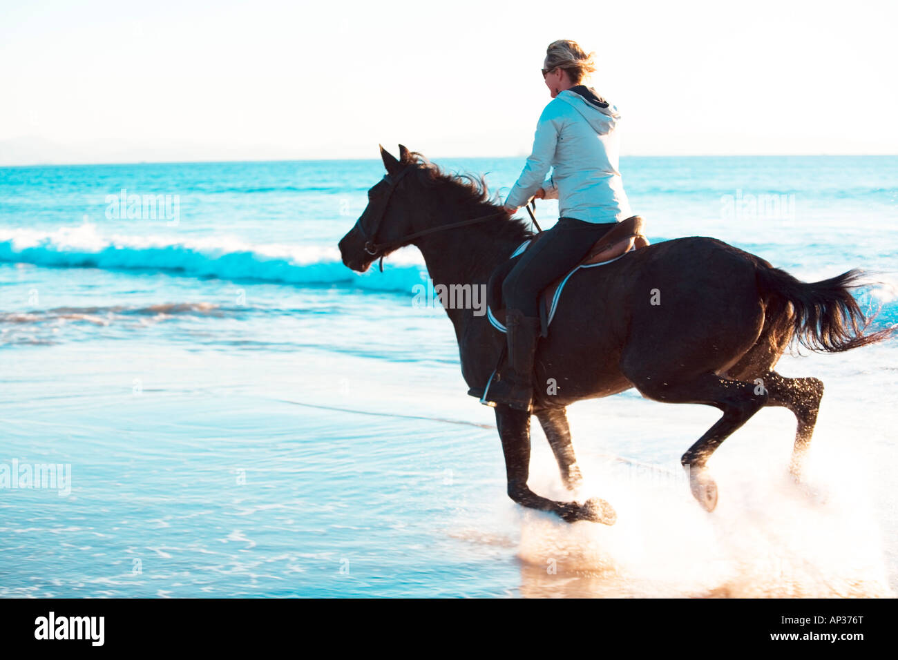 Giovane Donna Al Galoppo Su Un Cavallo In Riva Al Mare Foto Stock Alamy