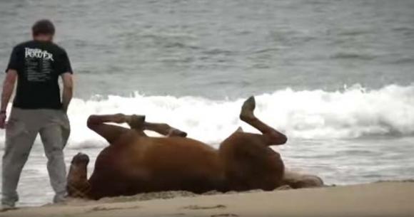 Adesivo Cavallo Sdraiato Sulla Spiaggia Di Sabbia Al Mare Pixers Viviamo Per Il Cambiamento