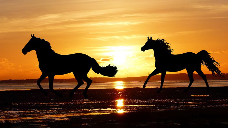 Tramonto Al Mare Con I Cavalli