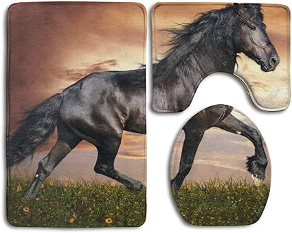 Fedso Set Di 3 Tappetini Da Bagno Antiscivolo Motivo Cavalli Arabi Neri Amazon It Casa E Cucina