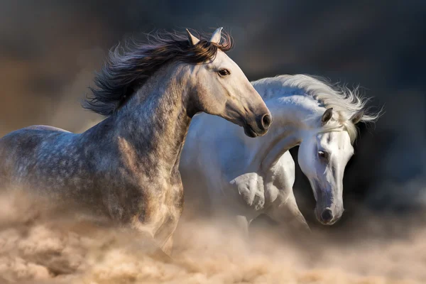 Due Cavalli Arabi Neri Che Corrono Nel Deserto Fotografia Stock Immagine Di Nave Esterno 51319830