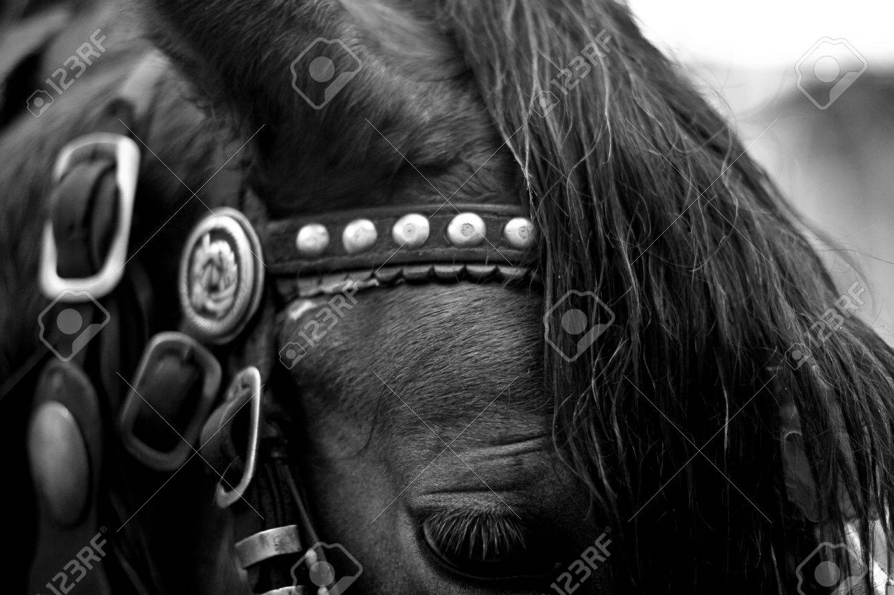 Immagini Stock Vicino In Bianco E Nero Di Una Testa Di Cavallo Con La Profondita Di Campo Image 53791350