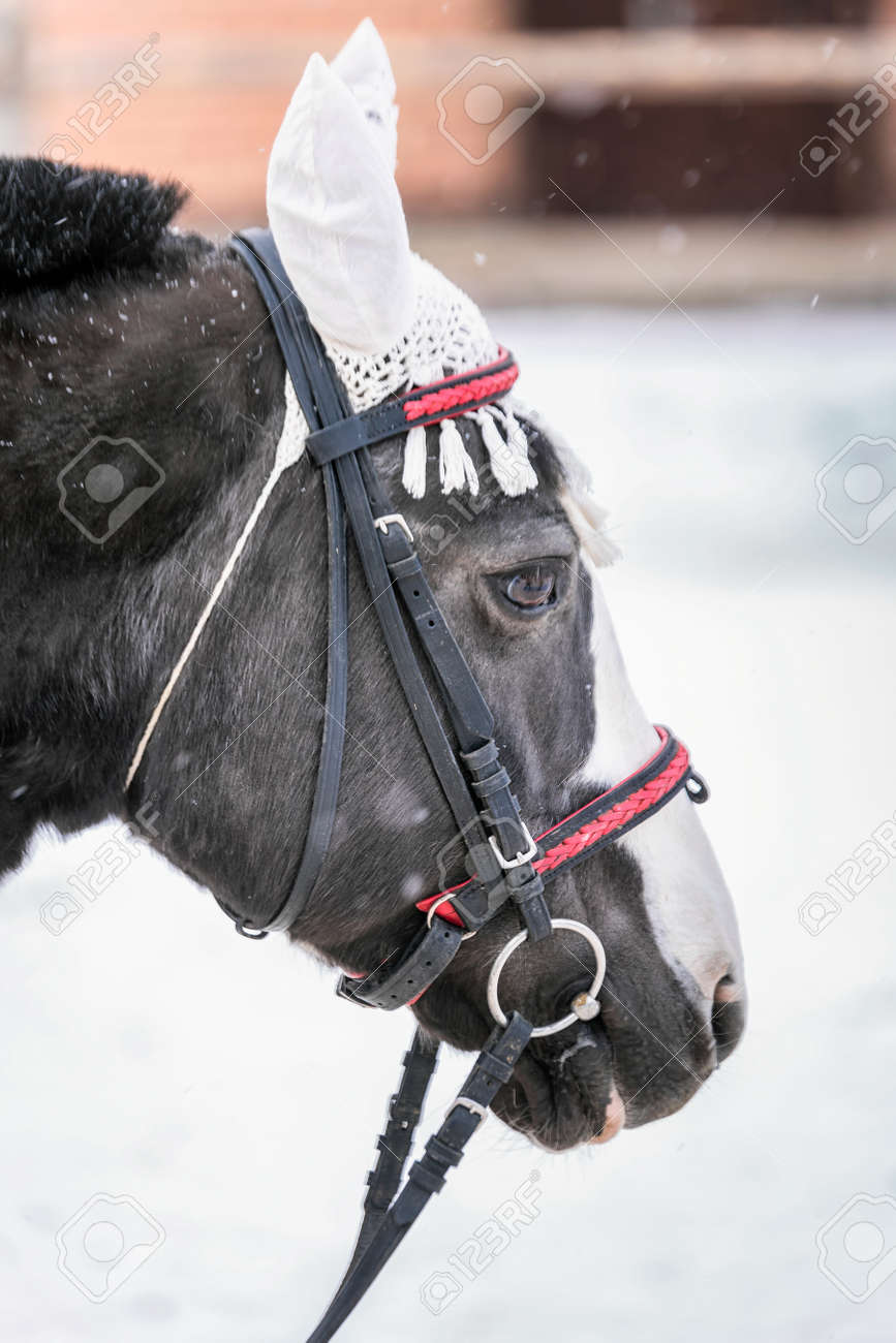 Immagini Stock Cavallo Sulla Neve Al Festival Di Shrovetide Settimana Del Pancake Con Attivita Sulla Neve All Aperto Tra Cui Braccio Di Ferro Lotta Con Le Borse Cubi Che Si Muovono A