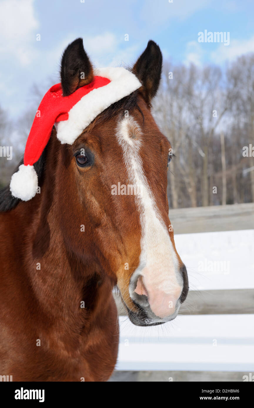 Cavallo Che Indossa Santa Hat Per Vacanze Di Natale E Capodanno Vicino Il Colpo Di Testa All Aperto Nella Neve Foto Stock Alamy