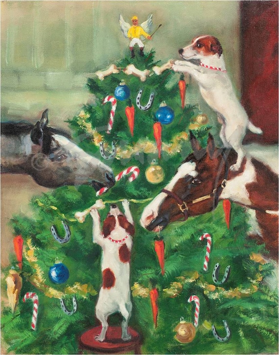 Cartoline Di Natale Di Cavalli E Cani Che Decora L Albero Etsy