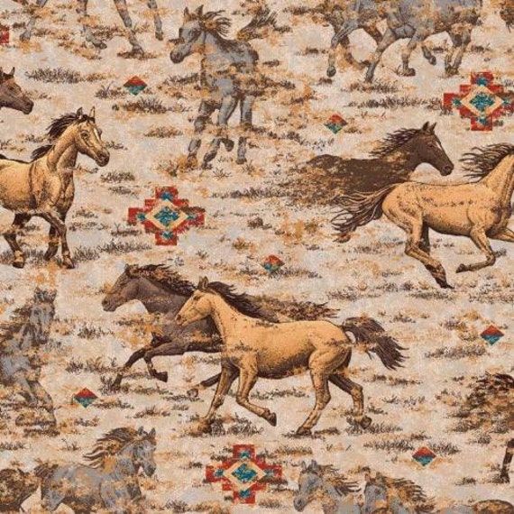 Tessuto Di Cotone Cavalli Indiani Proprieta Boho 100 X 110 Etsy