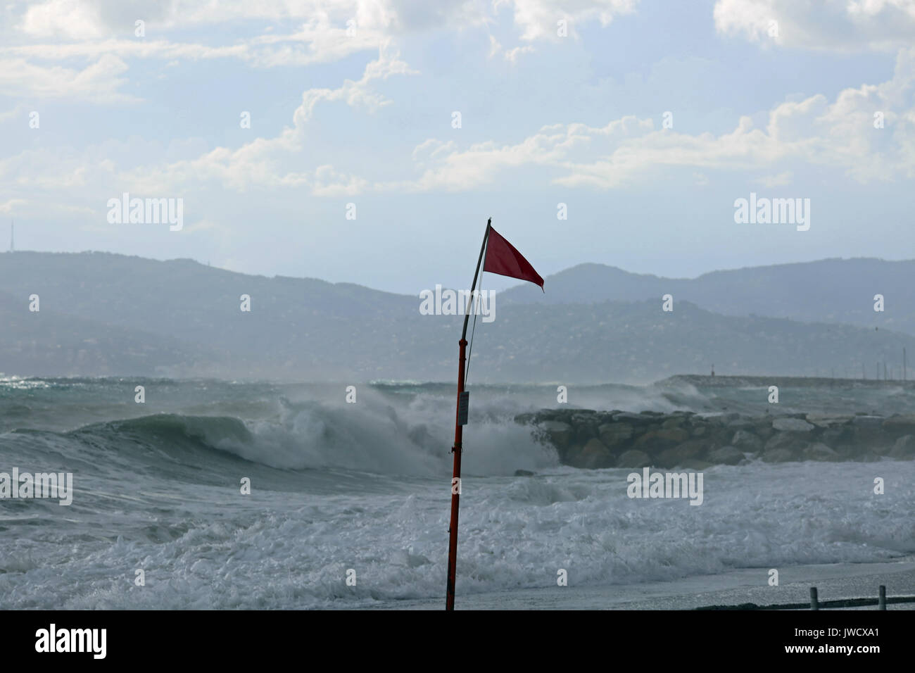 Cavi Di Lavagna Italy 11th Aug 2017 Red Flag Showing The Danger Stock Photo Alamy