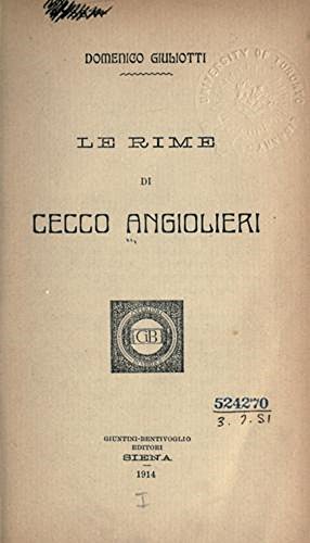 I Sonetti Di Cecco Angiolieri Editi Criticamente Ed Illustrati Per Cura Angiolieri Cecco Ca 1258 Ca 1312 Free Download Borrow And Streaming Internet Archive