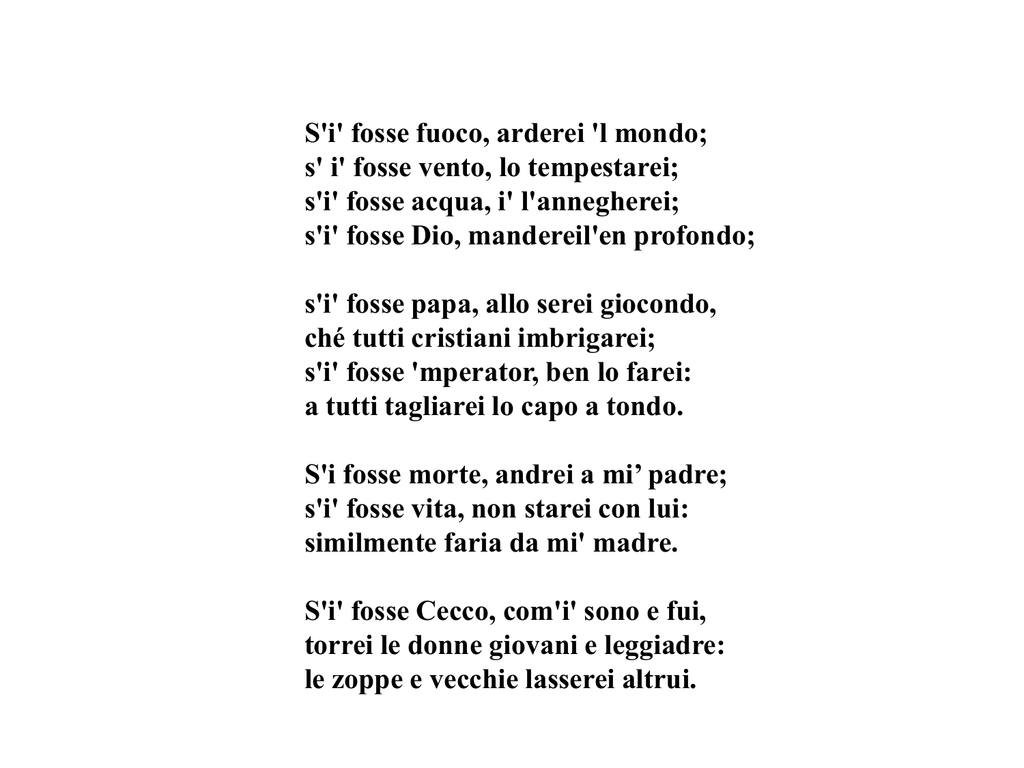 S I Fosse Foco Poesia Di Cecco Angiolieri