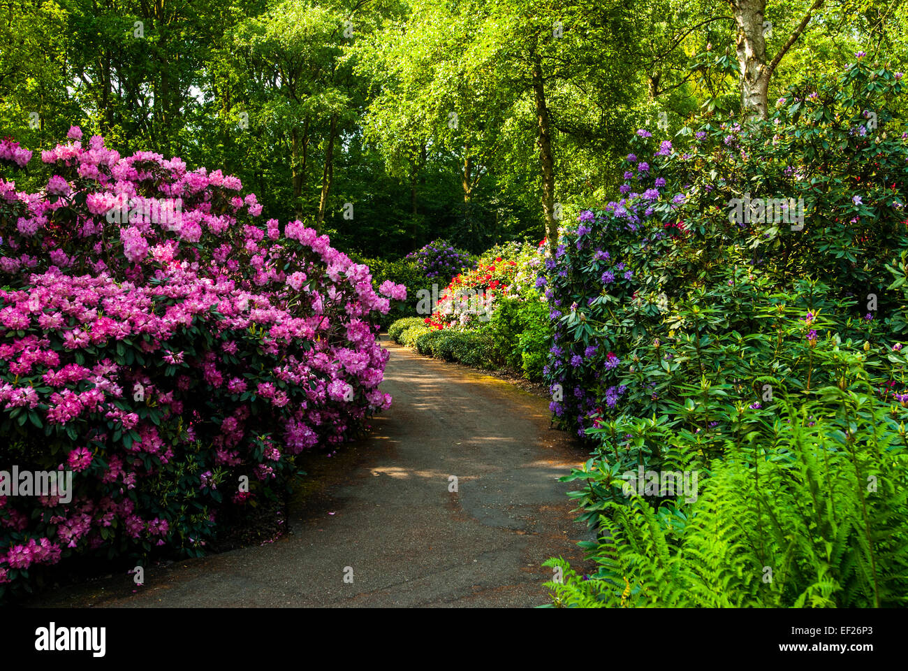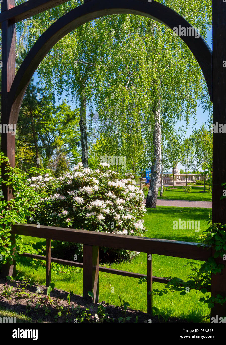 Giardino Scena Con Cespugli Fioriti E Alberi A Sbalzo Foto Stock Alamy