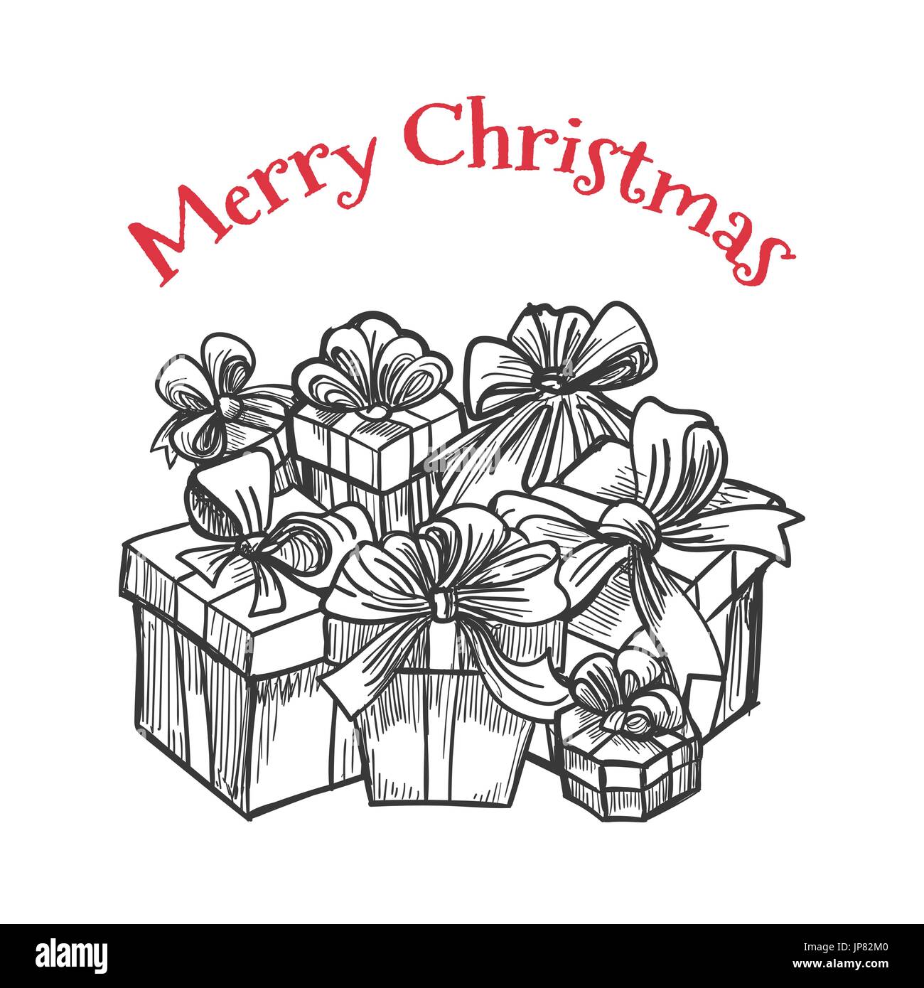 Black And White Gifts Boxes Vector Monochromic Merry Christmas Stock Vector Image Art Alamy
