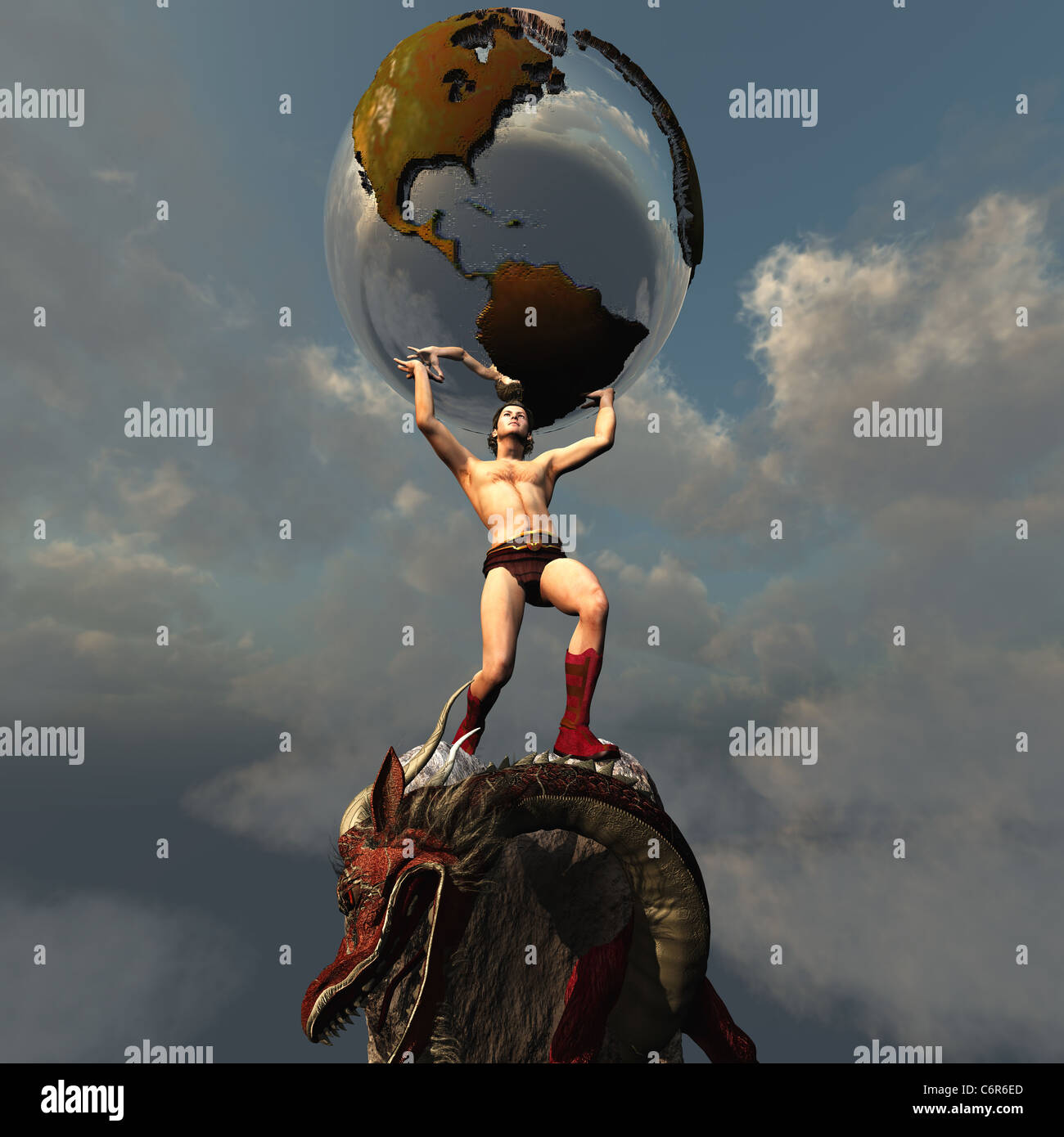 Atlas Detiene La Terra Dopo Egli Uccide Il Drago Che Rappresenta La Pace E Di Unita In Questa Parte Del Mondo Foto Stock Alamy