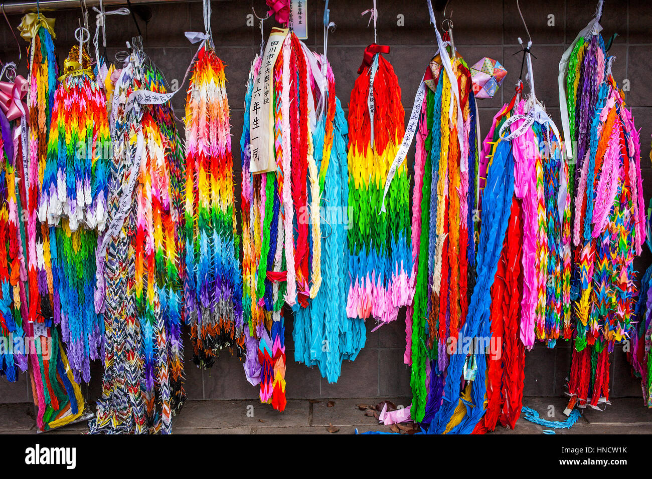 Origami Ghirlande Gru Di Carta Che Rappresentano La Pace Alla Bomba Atomica Ipocentro Di Nagasaki Giappone Foto Stock Alamy
