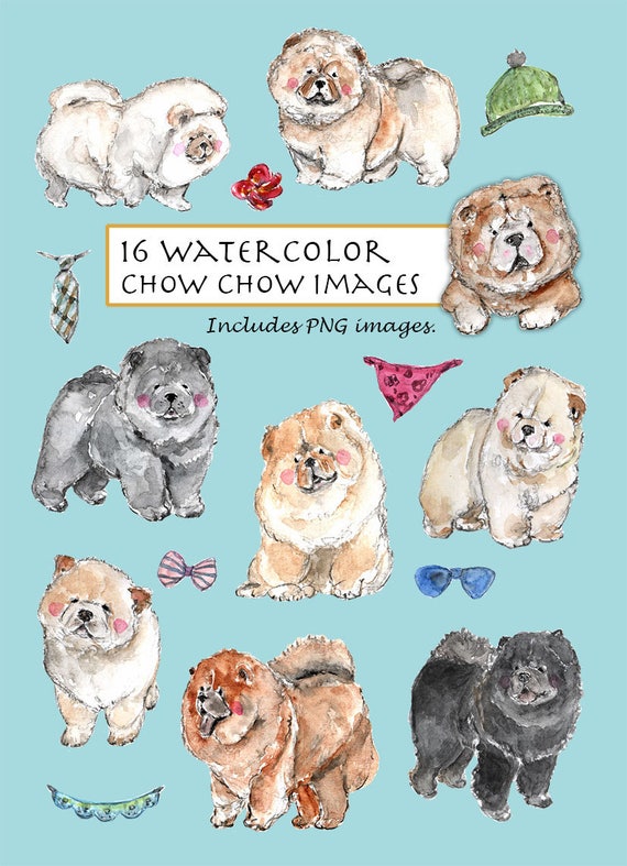 Clip Art Acquarello Chow Chow Insieme 16 Immagini Download Etsy