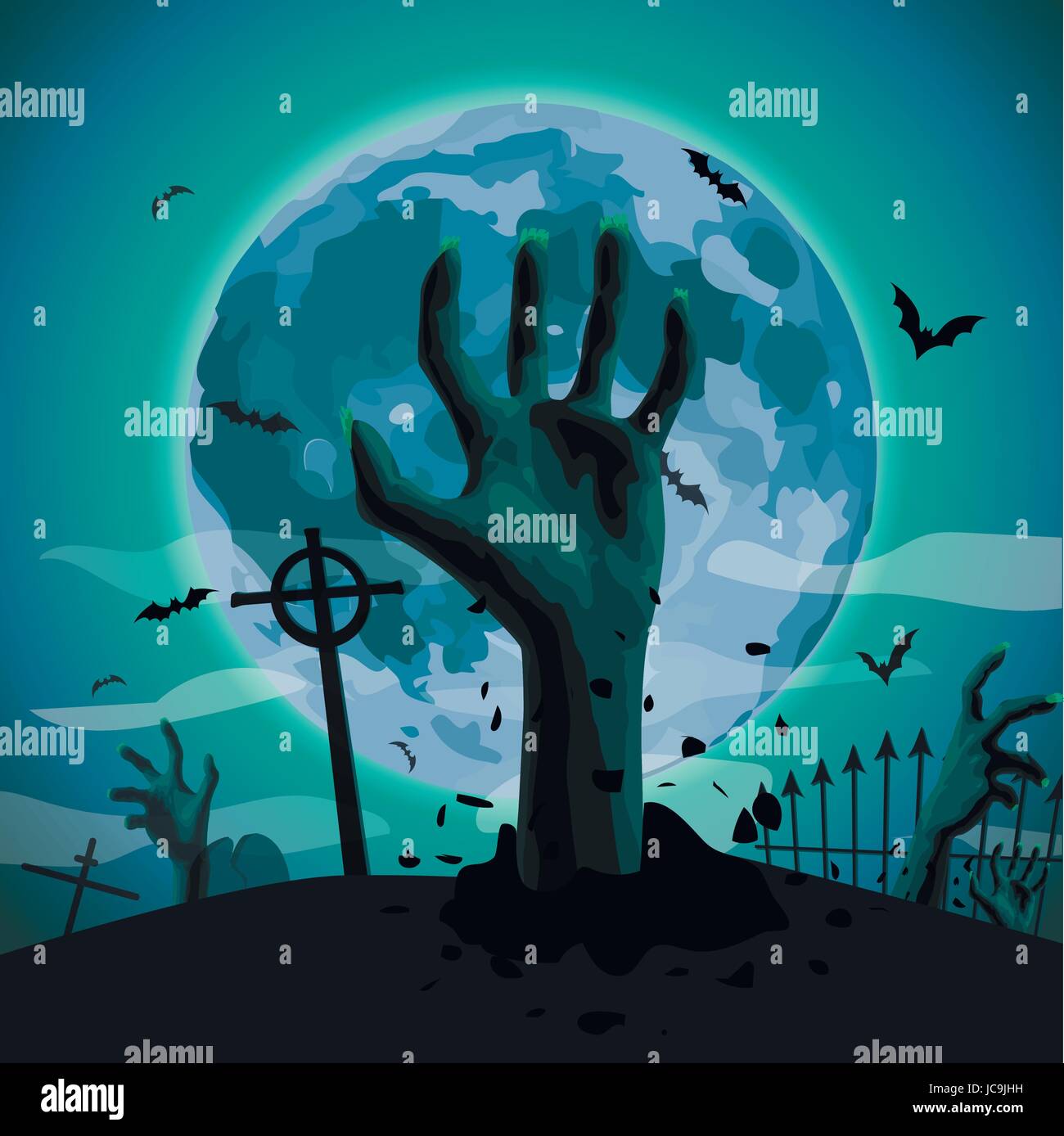 Notte Di Halloween Luna Piena Cimitero Cimitero Tombe Zombi Zombie Mani Incollate Al Di Fuori Della Massa Flittermouse Bat Verticale Del Vettore Closeup Vista Laterale Sig Immagine E Vettoriale Alamy