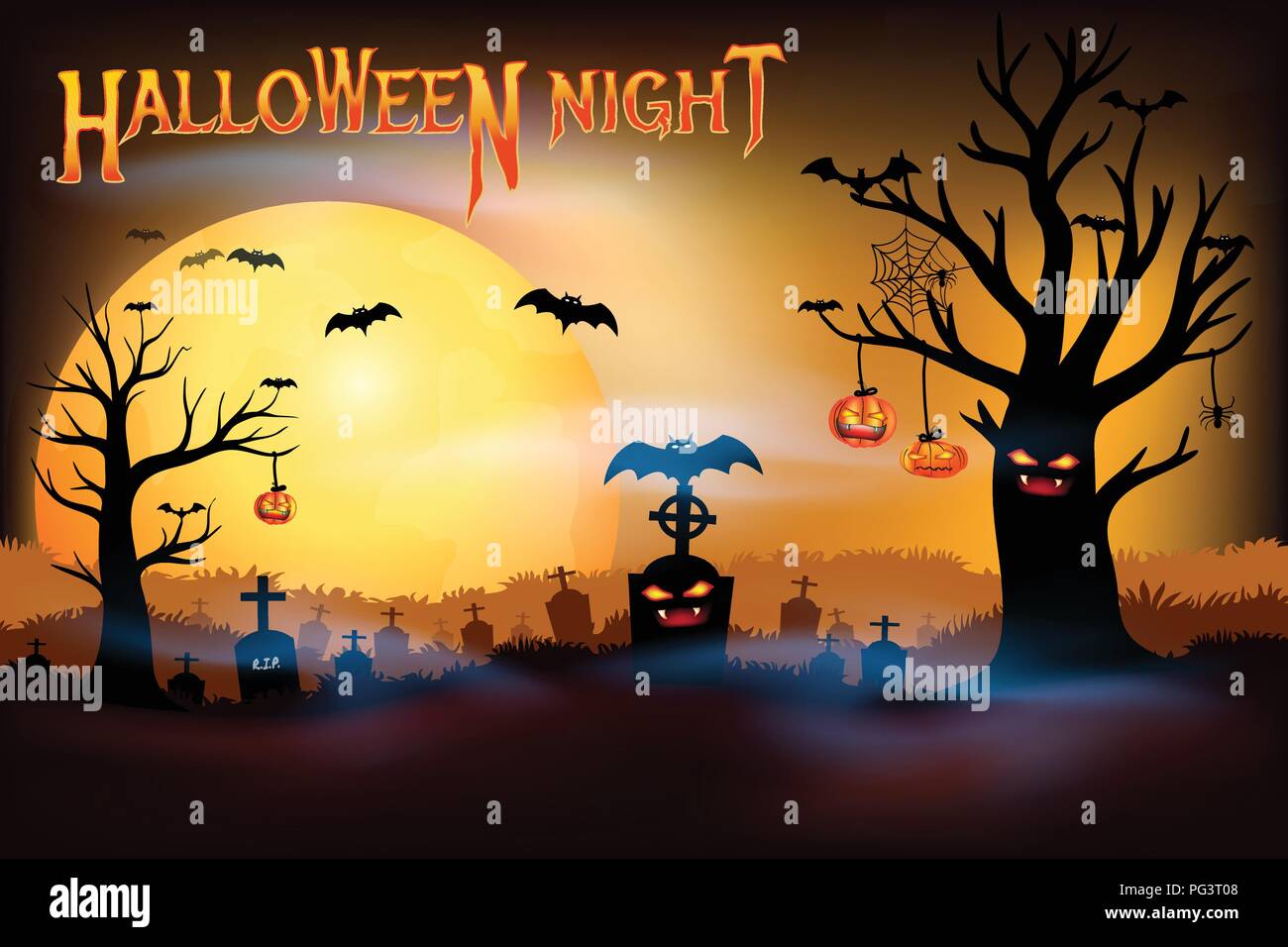 Halloween Vettore Illustrazione Con Luna Piena E Cimitero Su Il Cielo Notte Fondo Festa Aviatore Disegno Clipart K23833132 Fotosearch