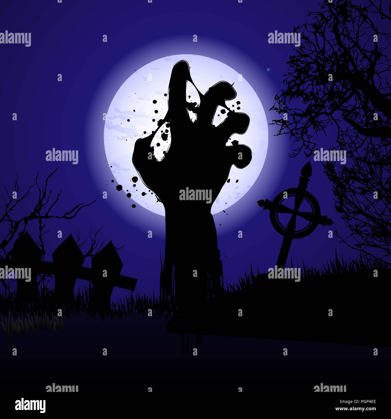 Blu Scuro Dello Sfondo Di Halloween Con Mano Zombie Nel Cimitero Immagine E Vettoriale Alamy