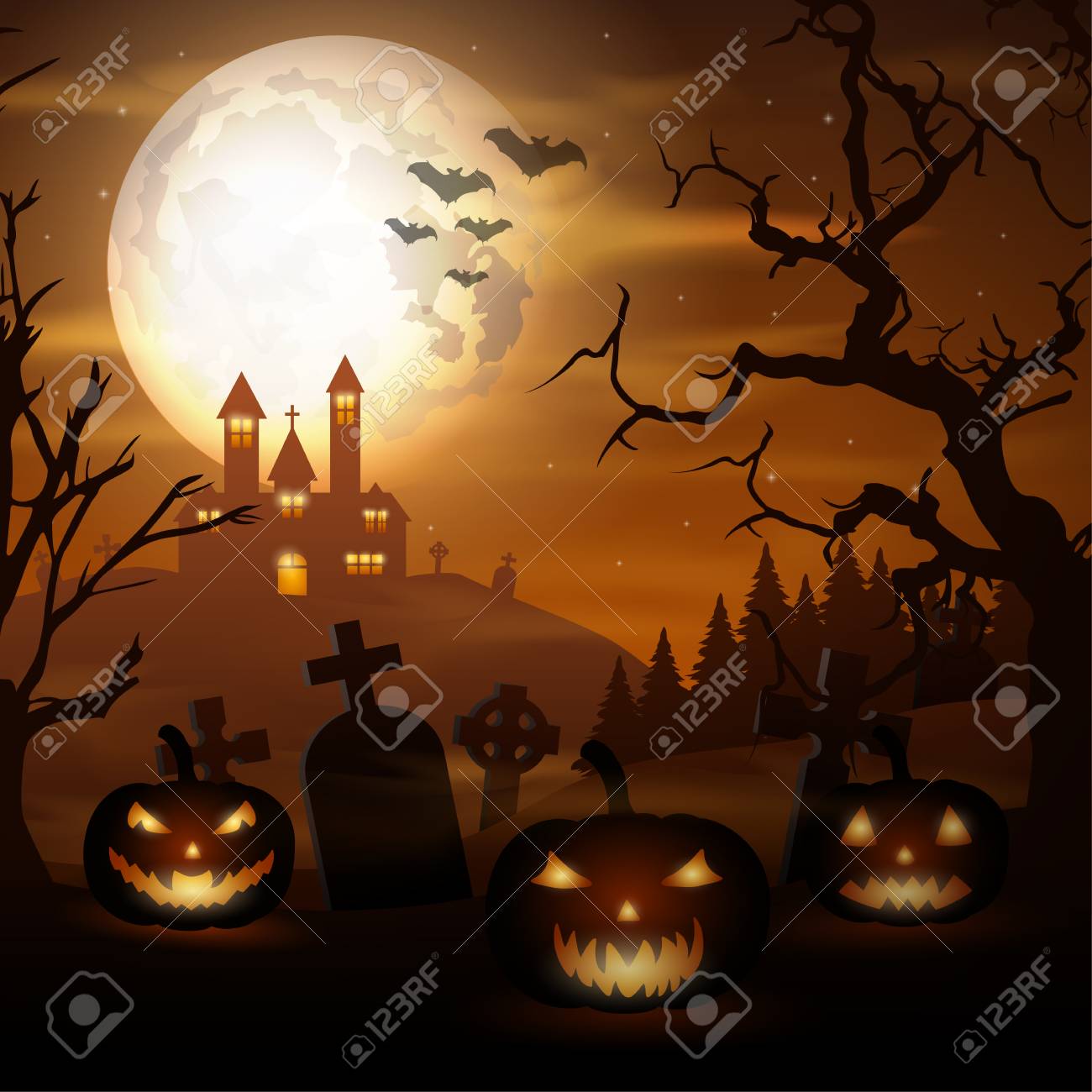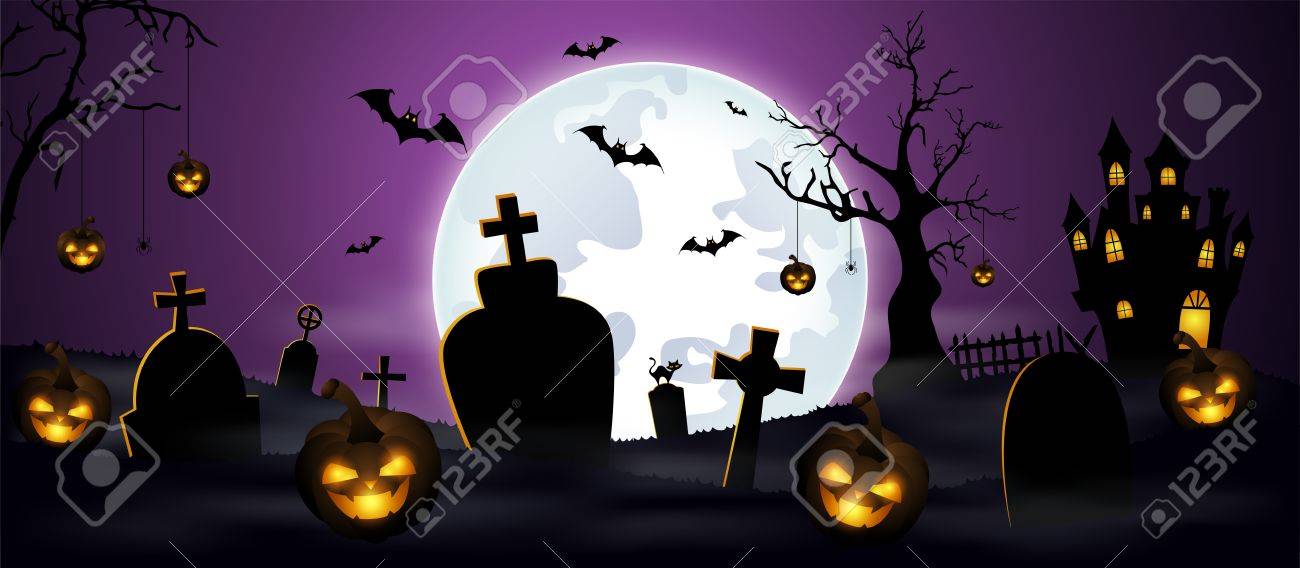 Halloween Cimitero Fondo Pipistrelli Cimitero Halloween Fondo Zucca Canstock