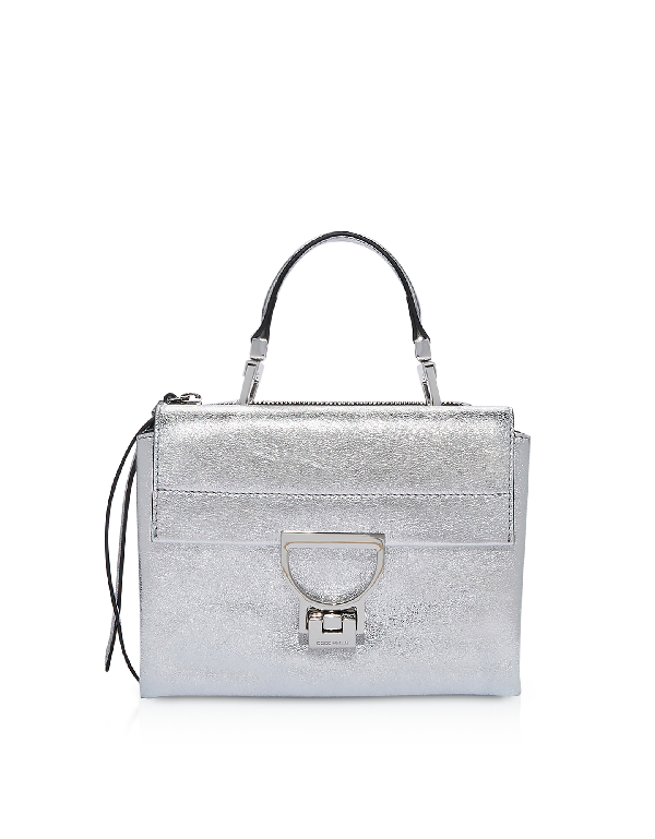 Coccinelle Arlettis Silver Glitter Mini Shoulder Bag Mini Shoulder Bag Leather Satchel Bag Bags