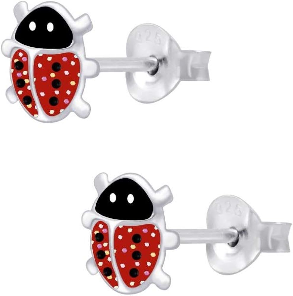 Laimons Orecchini Da Bambina A Forma Di Coccinella In Argento Sterling 925 Con Glitter Colore Nero Bianco Rosso 6 Mm Orecchini Gioielli
