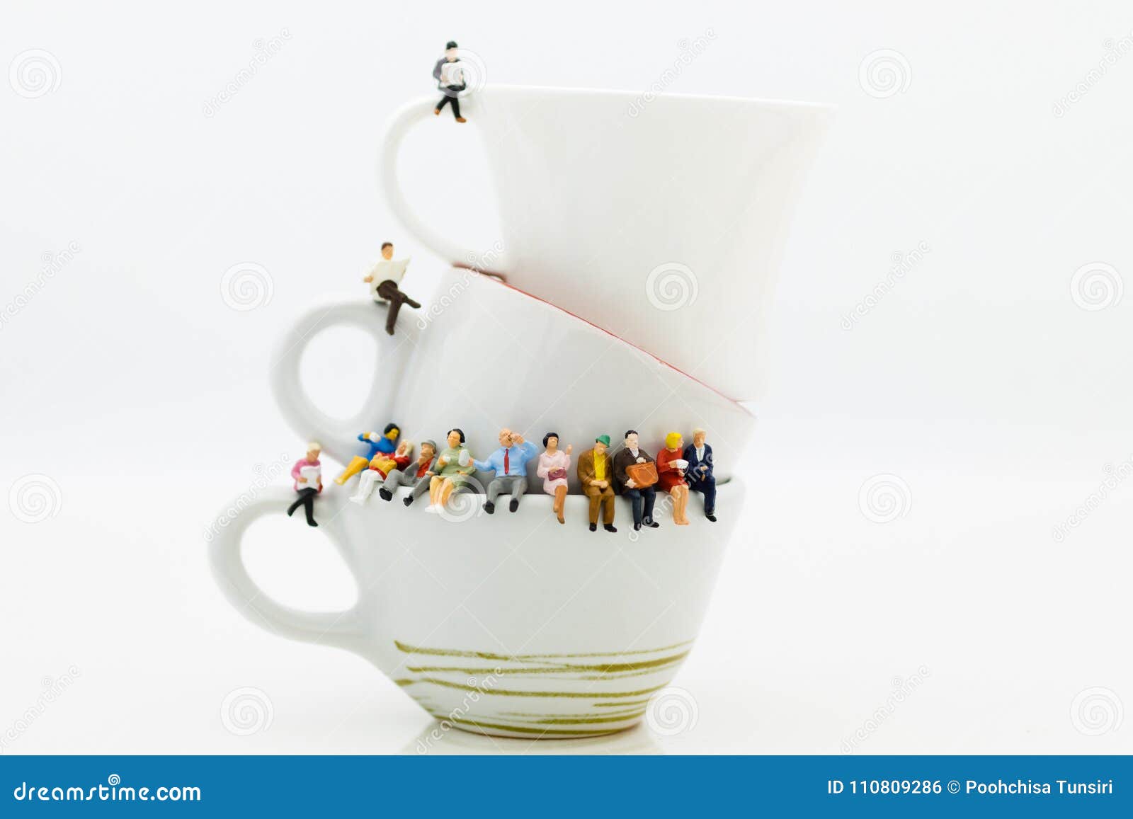 Miniature People Business Team Sitting On Cup Of Coffee And Having A Coffee Break Image Use For Business Concept Stock Photo Image Of Concept Adult 110809286
