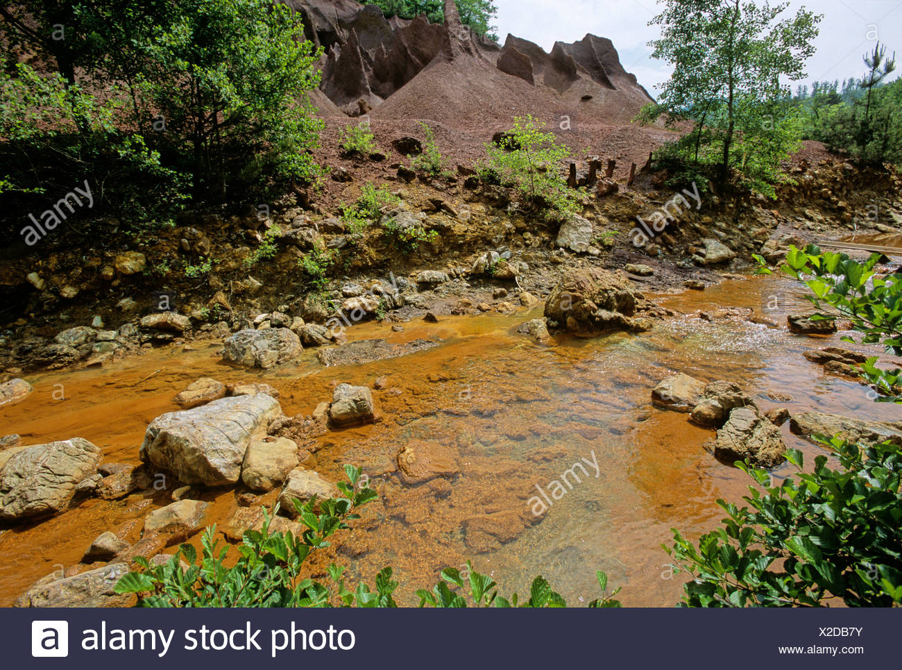 Iron Staining Polluting River Merse Water Near Montieri Tuscany Stock Photo Alamy