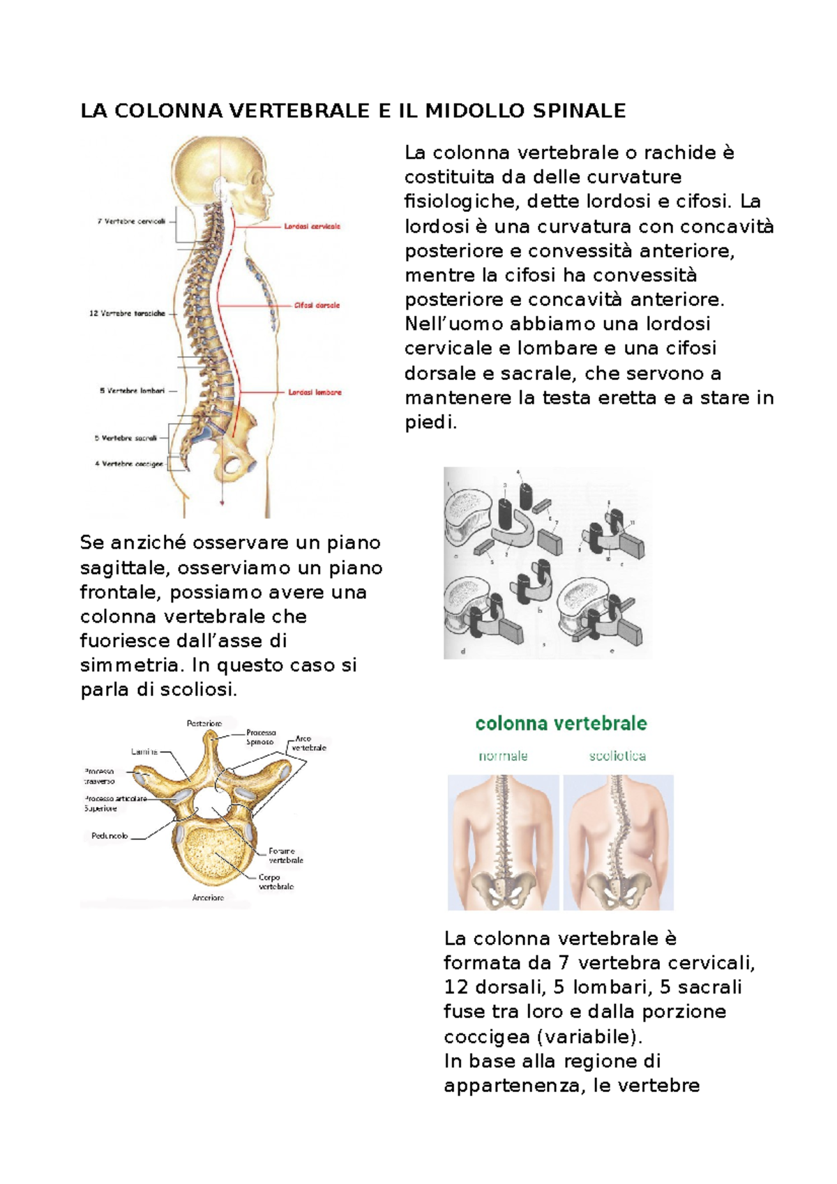 Brevi Cenni Di Anatomia La Colonna Vertebrale