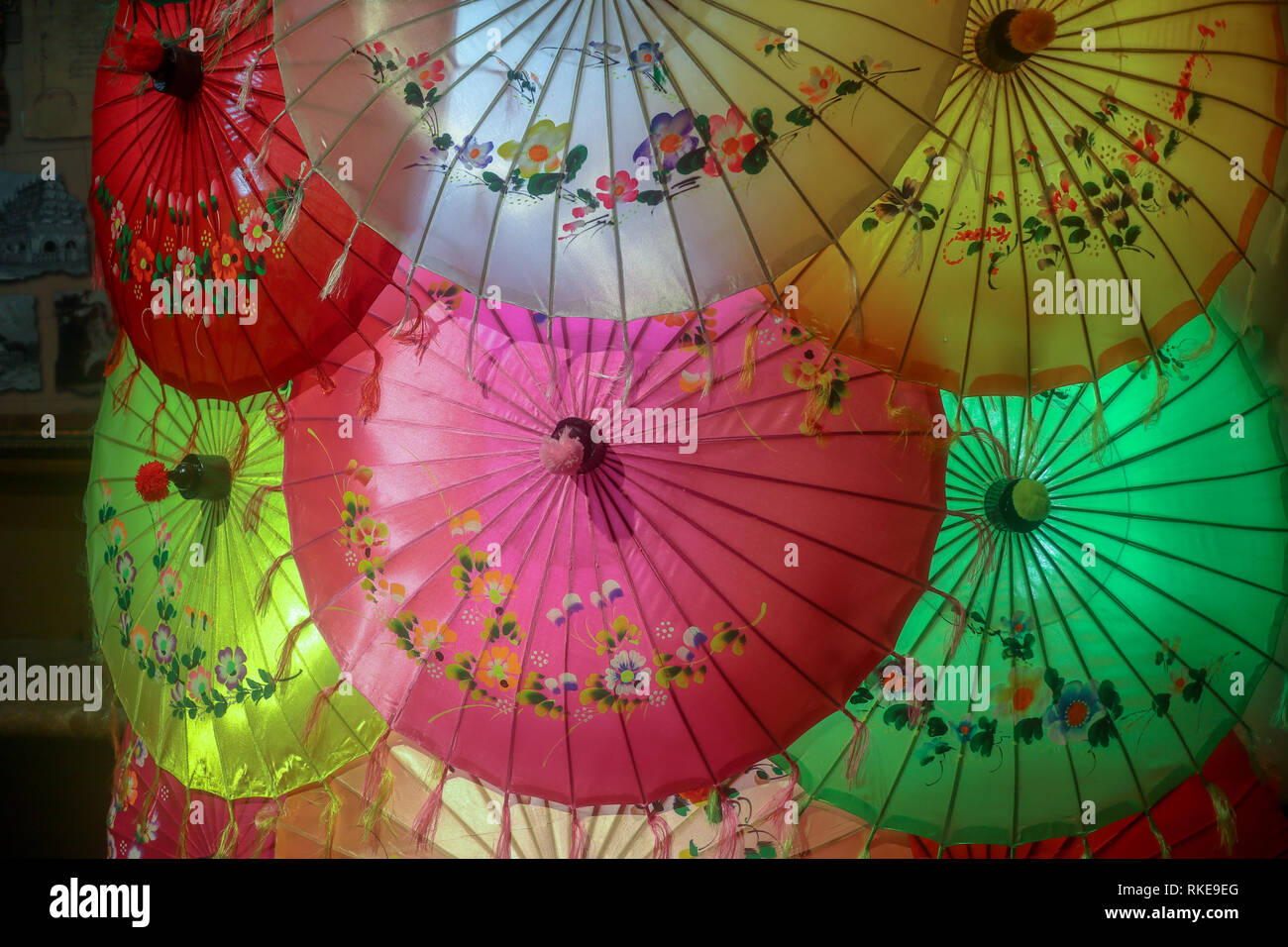 Gli Ombrelli Di Seta Colorata E Bella Foto Stock Alamy