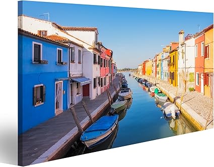 Islandburner Quadro Moderno Belle Case Colorate E Un Canale Con Barche A Burano Venezia Italia Mjg 1k It Amazon It Casa E Cucina