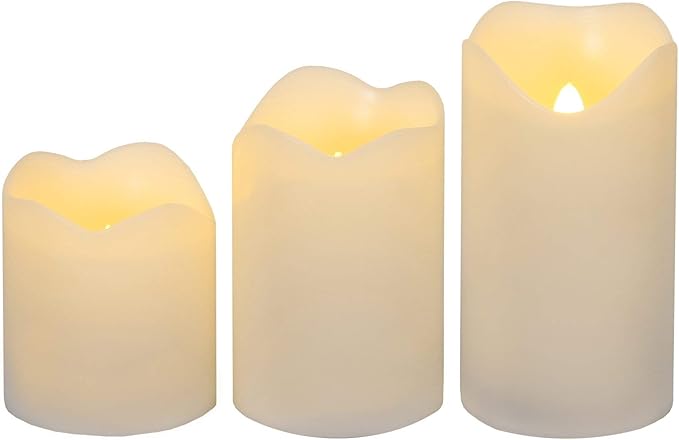 Set 3 Candele In Cera Con Luce Led Tremolante Bianco Caldo Profumate Vaniglia