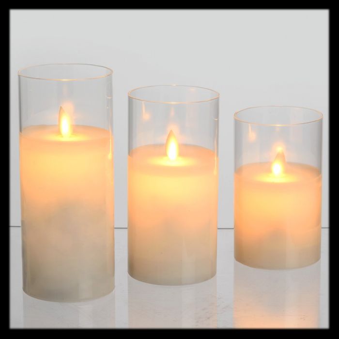 Set 3 Candele O 7 5 Cm In Cera Con Vetro Moving Flame Led Bianco Classic A Batterie
