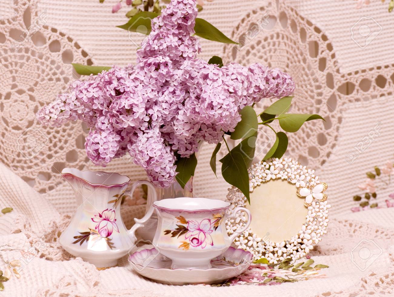 Immagini Stock Tazza Di Te E Fiori Di Primavera Con La Nota Di Buongiorno Image 38301136