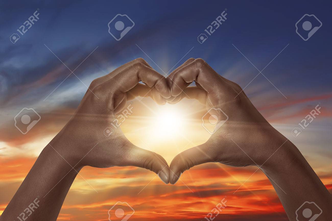 Immagini Stock A Forma Di Cuore A Mano Con Sfondo Di Alba Cuore A Forma Di Mano E Un Simbolo Di Amore Di Liberta Romanticismo Image 61489702