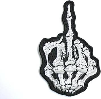 Patchmonkey Toppa A Forma Di Mano Scheletrica Con Dito Medio Alzato Per Motociclisti Da Cucire Stirare Misura 9 8 Cm Amazon It Auto E Moto