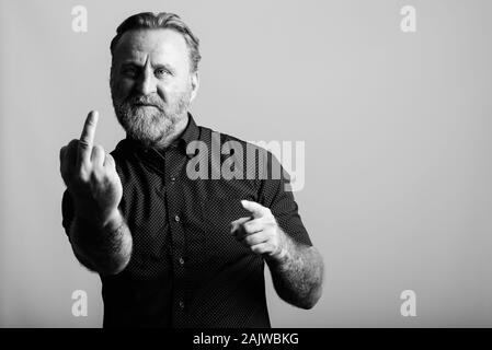 Maturo Uomo Barbuto Con La Mano Di Tatuaggi Che Mostra Il Dito Medio Foto Stock Alamy