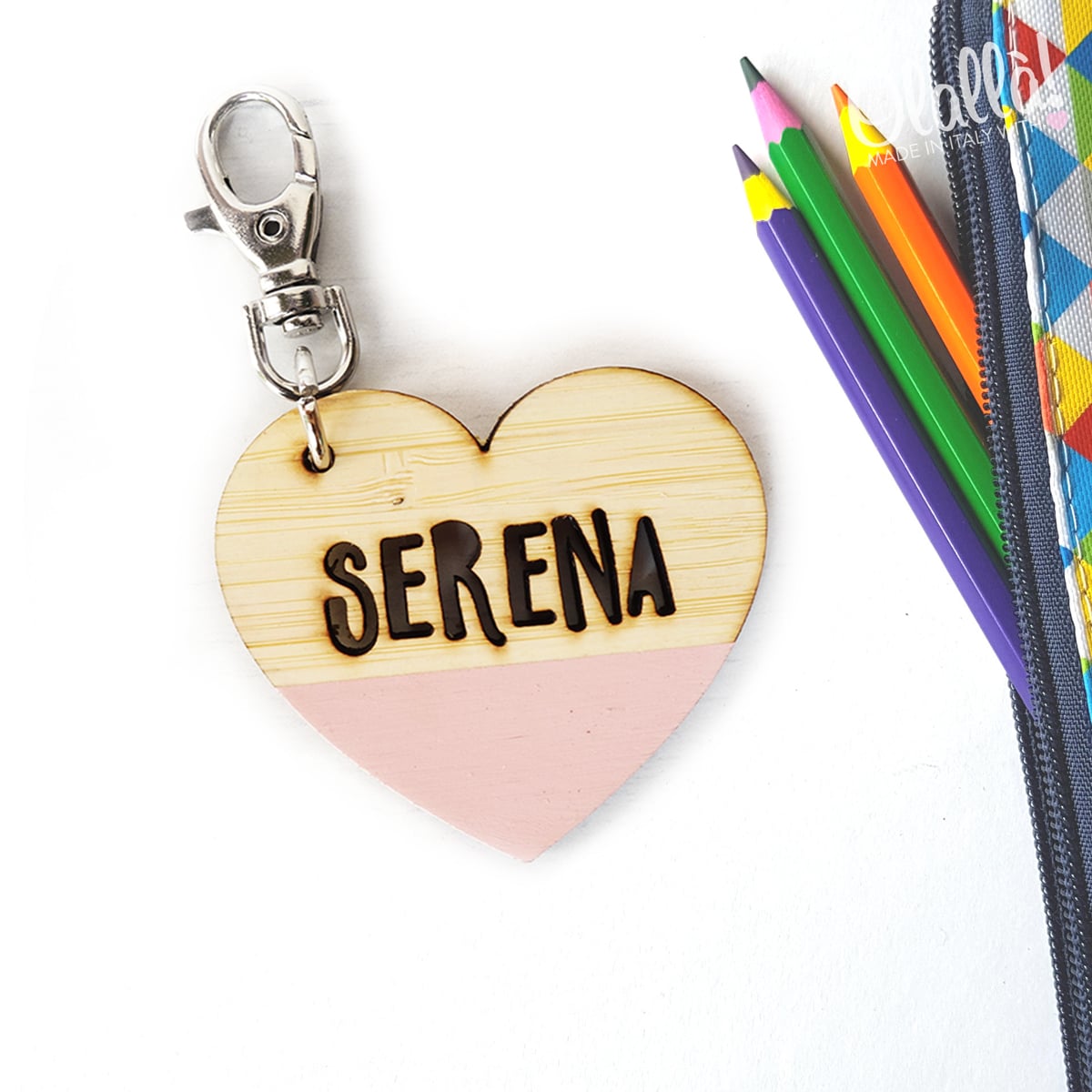 Etichetta Portachiave Personalizzata Con Nome Per Borse E Zaino Scuola In Legno A Cuore Olalla