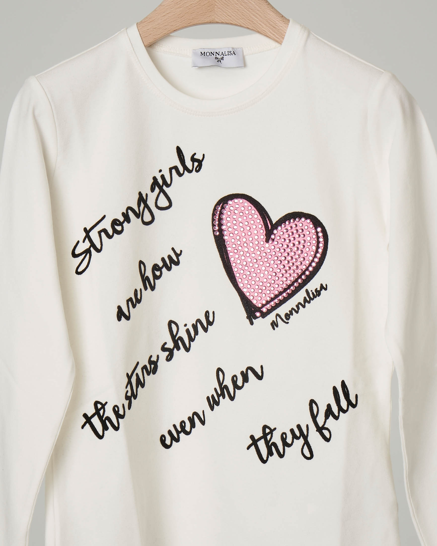 T Shirt Bianca Manica Lunga Con Scritte In Velluto E Cuore Rosa Con Strass 6 12 Anni Pellizzari E Commerce