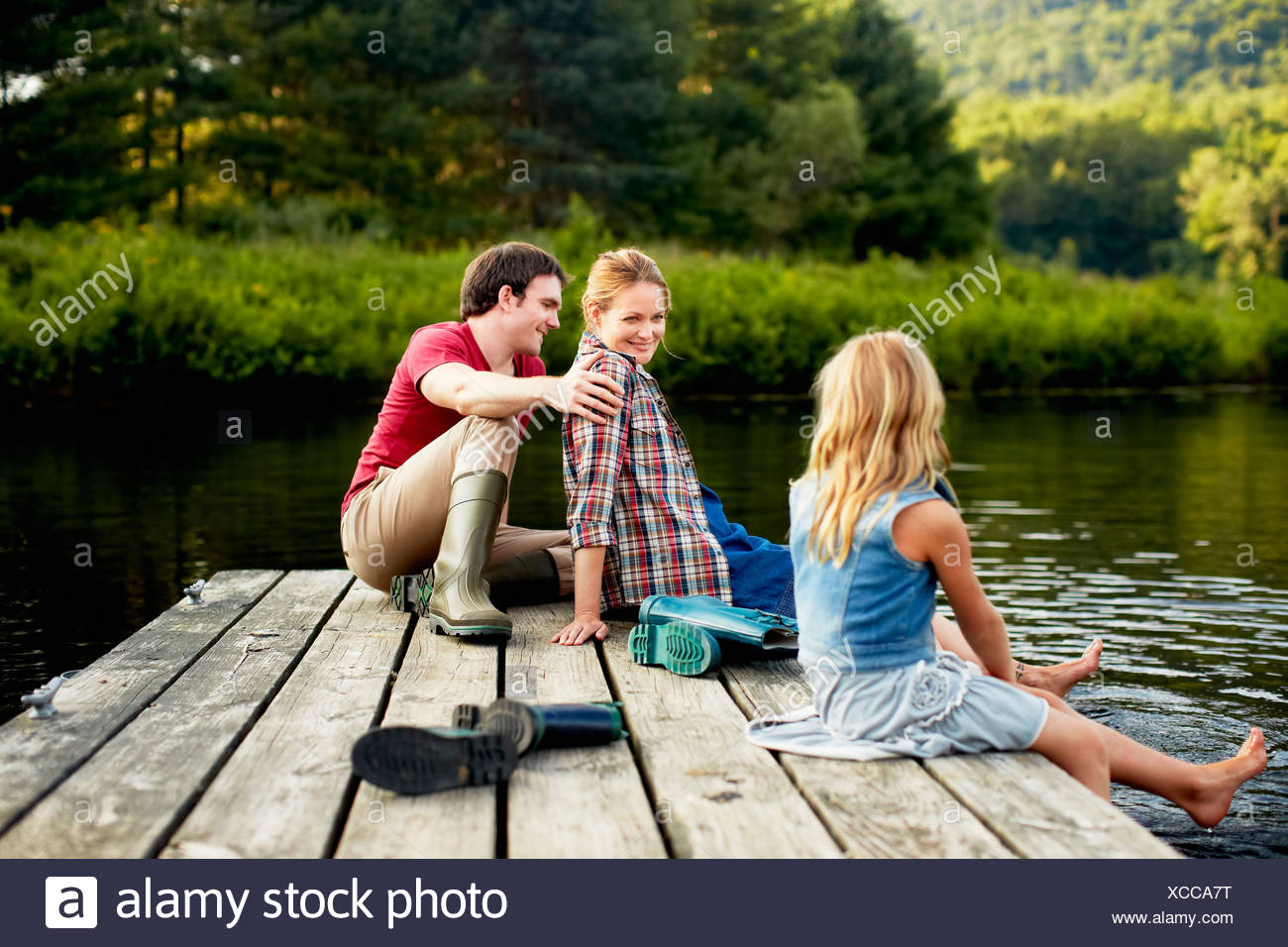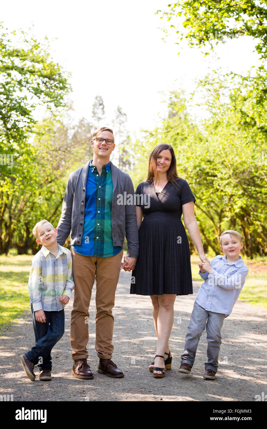 Famiglia Di 4 Persone All Aperto In Un Ambiente Naturale Con Una Bella Luce In Un Ritratto Di Stile Di Vita Foto Stock Alamy