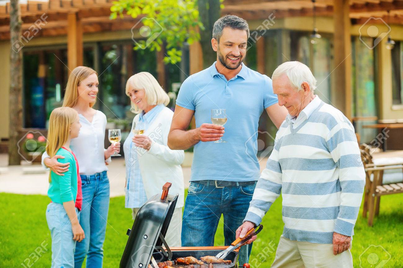 Immagini Stock Trascorrere Del Tempo Di Qualita Con La Famiglia Felice Famiglia Di Cinque Persone Che Spendono Tempo Sul Cortile Insieme Image 40812681