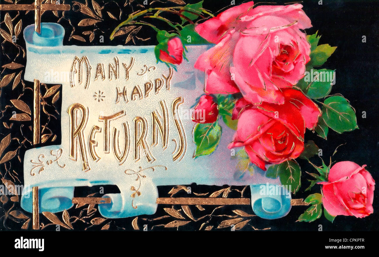 Tanti Auguri Vintage Biglietto Di Auguri Di Compleanno Con Rose Foto Stock Alamy