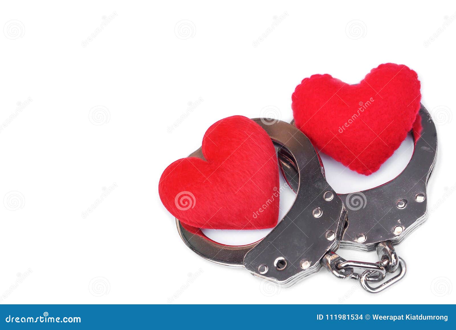 Manette Con Un Cuore Rosso Di Amore Fotografia Stock Immagine Di Rosso Manette 111981534