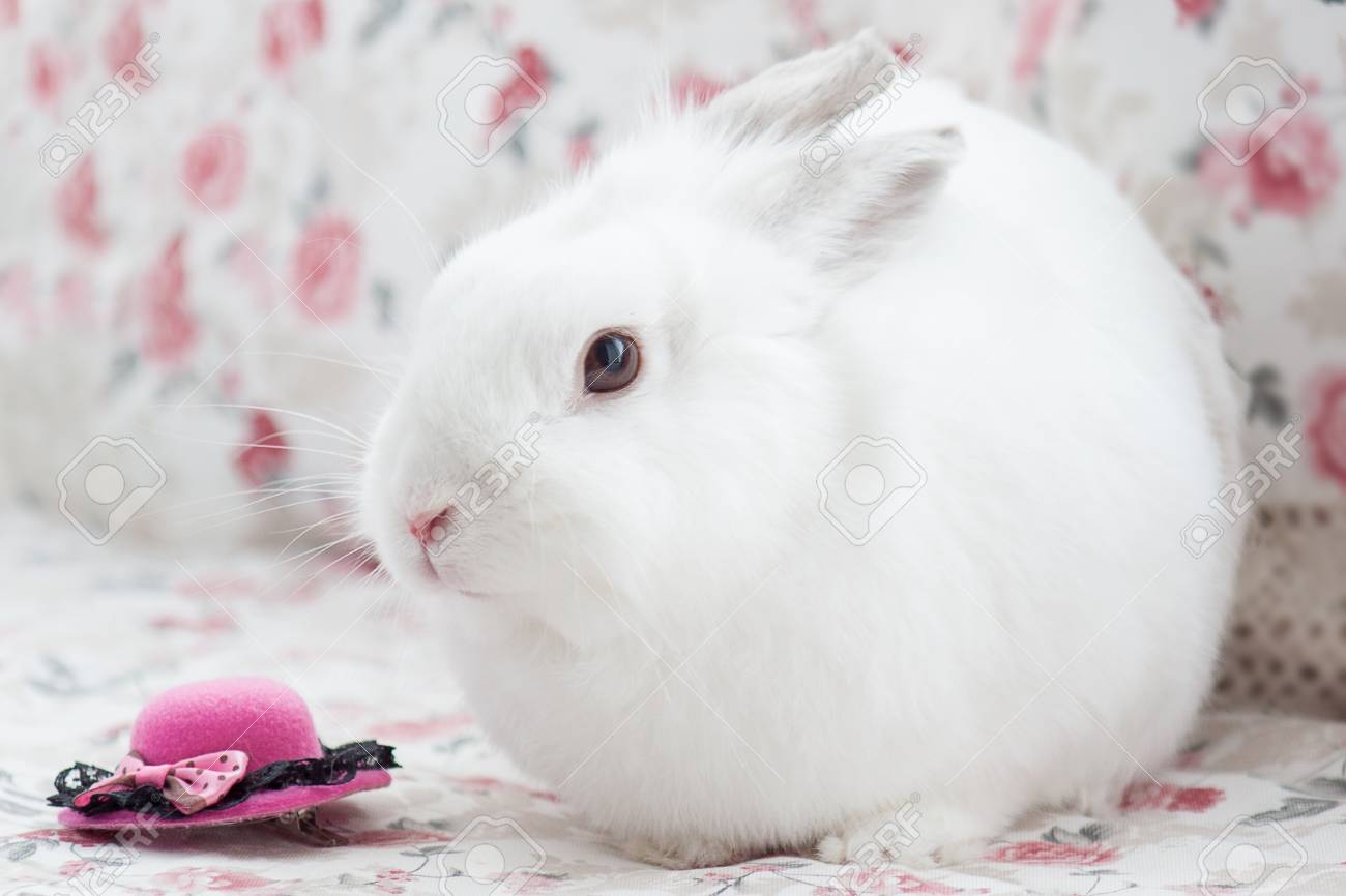 Immagini Stock Coniglio Bianco Birichino Su Sfondo Rosa Storia Per Playboy Coniglio Puo Riprodursi Tutto Il Tempo Image 81508075