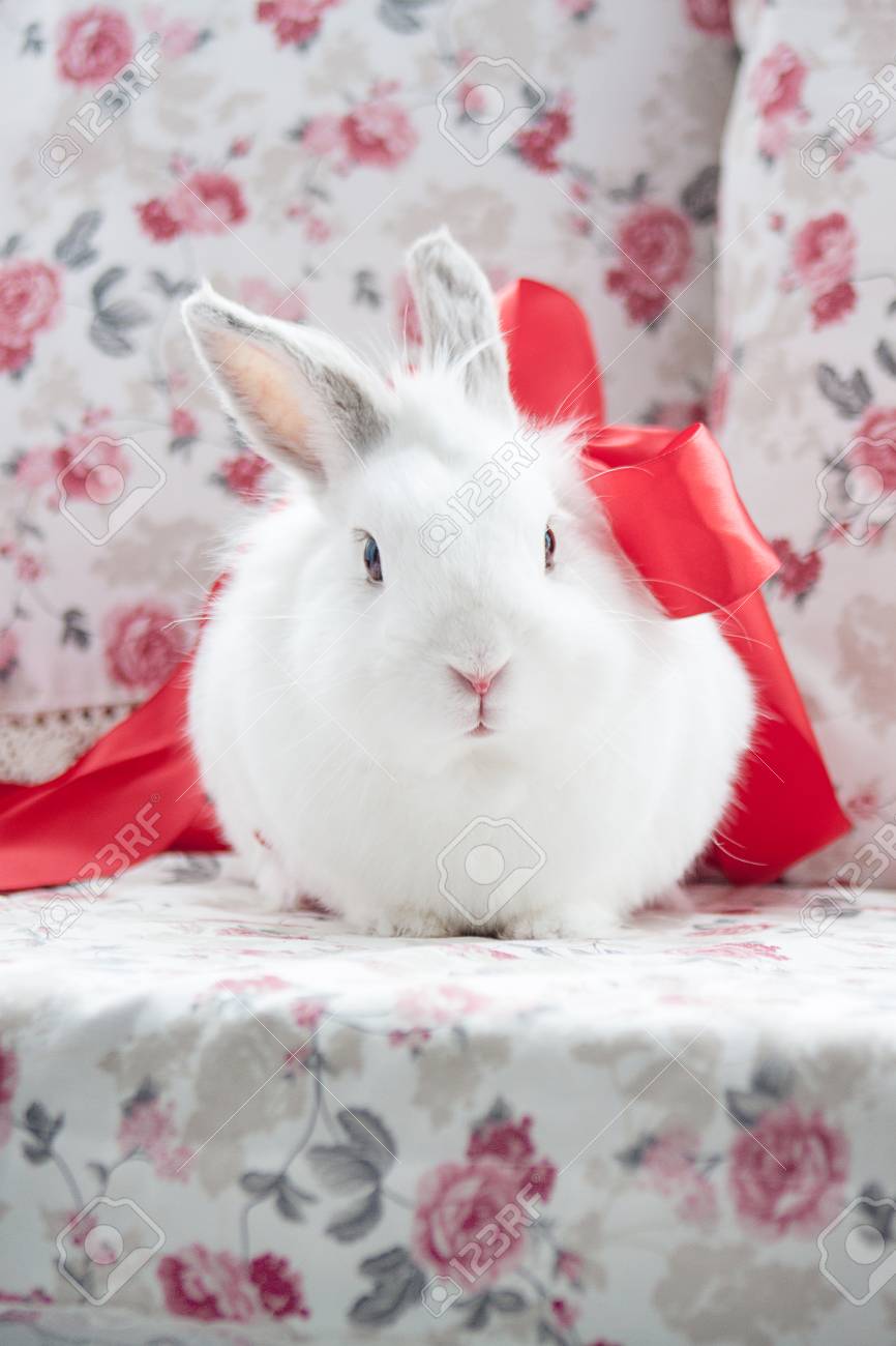 Immagini Stock Bel Coniglio Bianco E Seduto Su Un Cuscino Morbido Animali Domestici Image 84622087