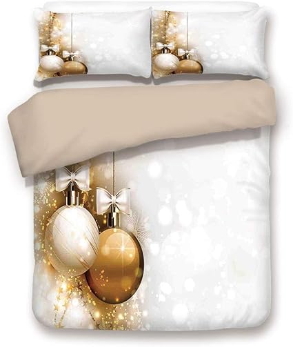 Set Copripiumini Natale Rituali Religiosi In Primo Piano Baubles Natalizi Con Nastro Immagine Di Wish Desiderio Immagine Decorativa Beige Dorato Set Di 3 Pezzi Decorativi Da 2 Pillow Shams Taglia Amazon It Casa